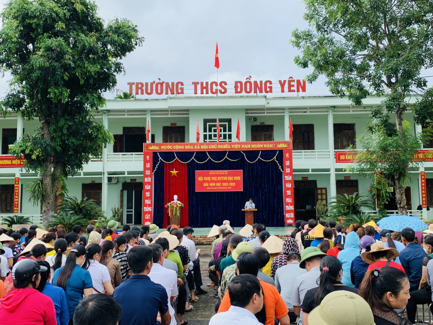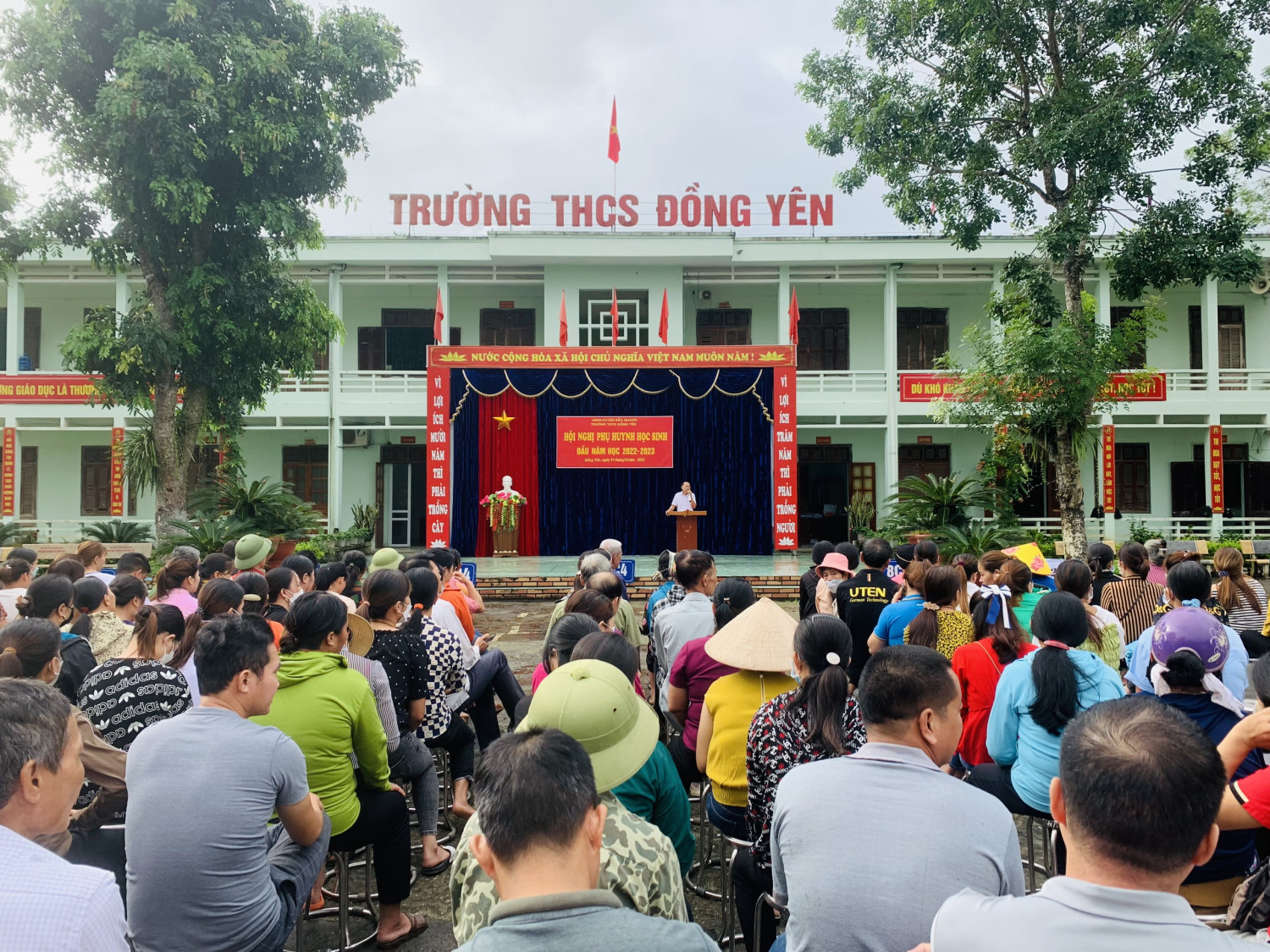 Ngày 01/10/2022 trường THCS Đồng Yên đã tiến hành họp phụ huynh học sinh đầu năm, năm học 2022-2023. Để buổi họp phụ huynh có hiệu quả triển khai được đầy đủ các nội dung và thuận lợi đồng thời đảm bảo an toàn, nhà trường đã xây dựng kế hoạch rất chi tiết, phân phối thời gian tổ chức họp chung toàn trường và họp riêng tại lớp phù hợp.