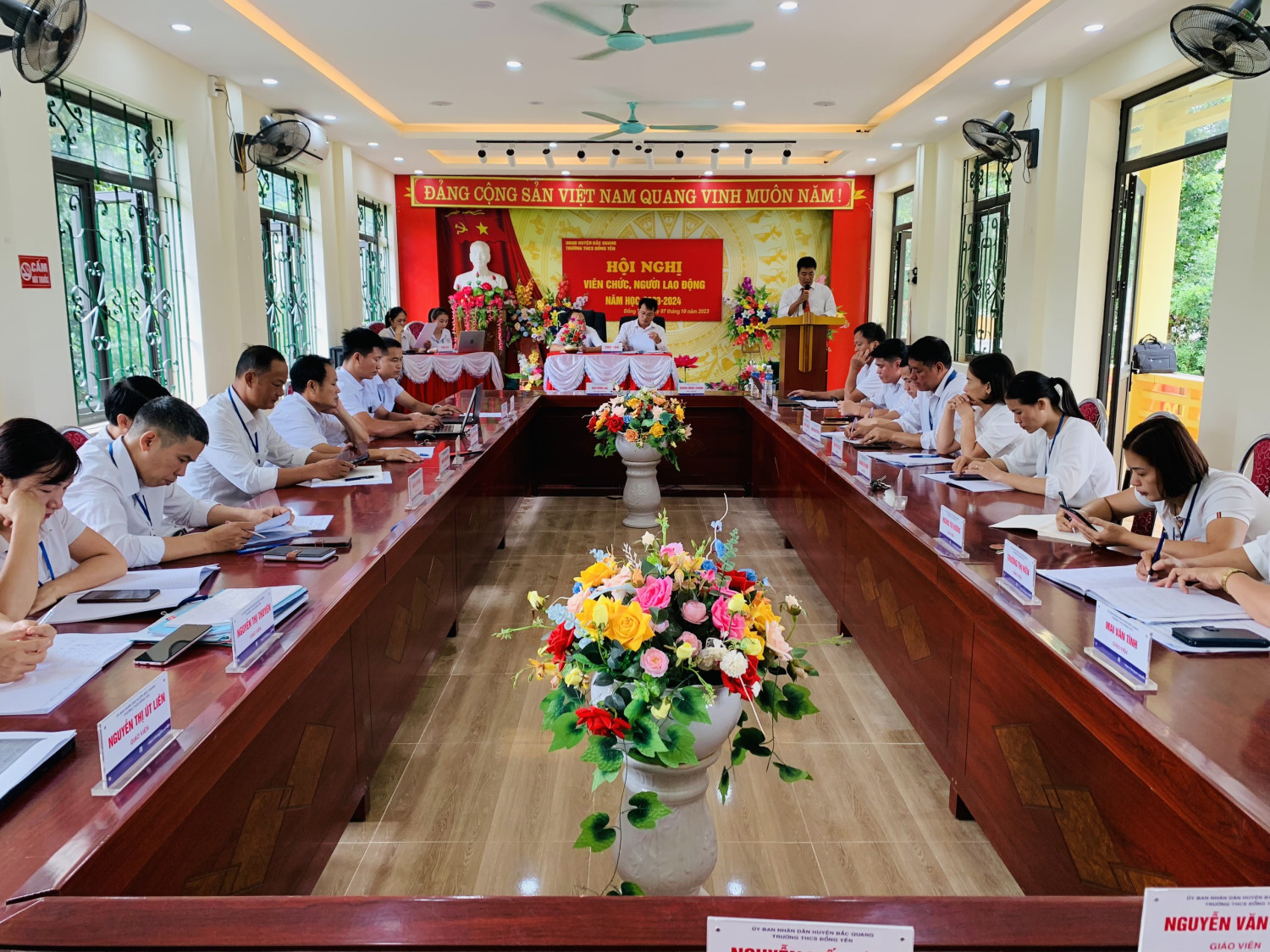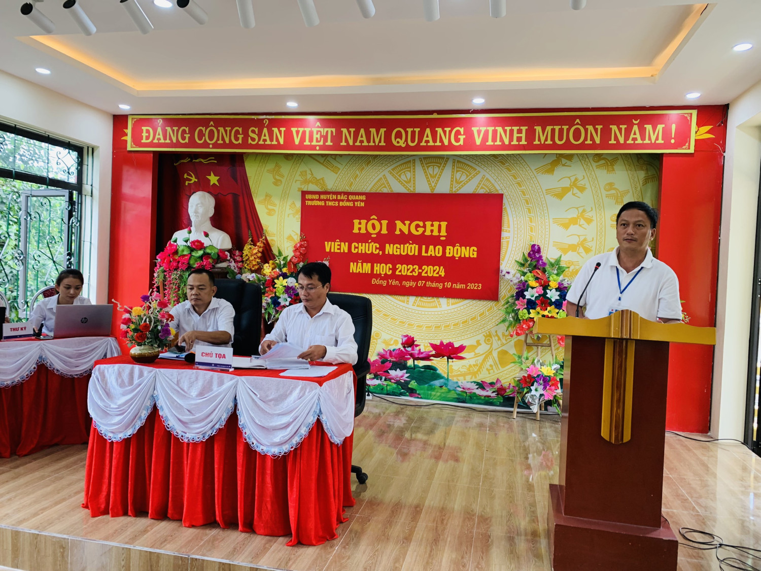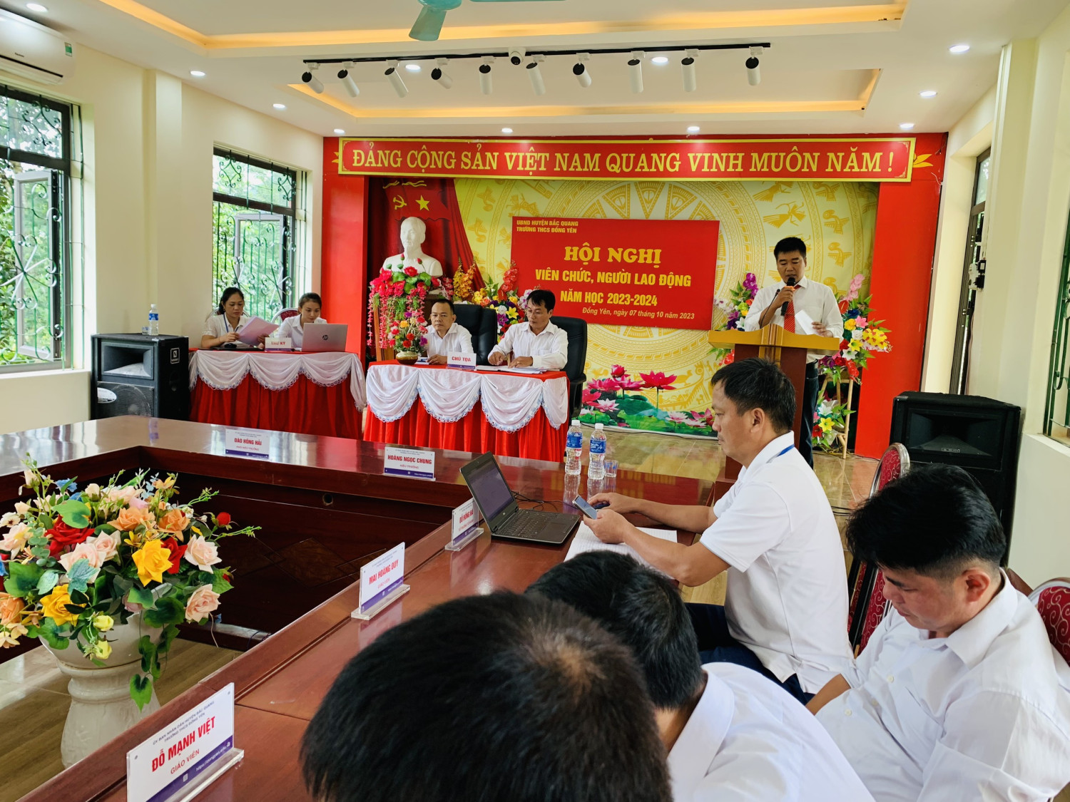 Chiều ngày 07/10/2023, Trường THCS Đồng Yên long trọng tổ chức Hội nghị viên chức và người lao động năm học 2023 - 2024. Hội nghị có ý nghĩa quan trọng, nhằm đánh giá và tổng kết những kết quả đã đạt được trong năm học 2022 - 2023 và phương hướng nhiệm vụ năm 2023 - 2024.