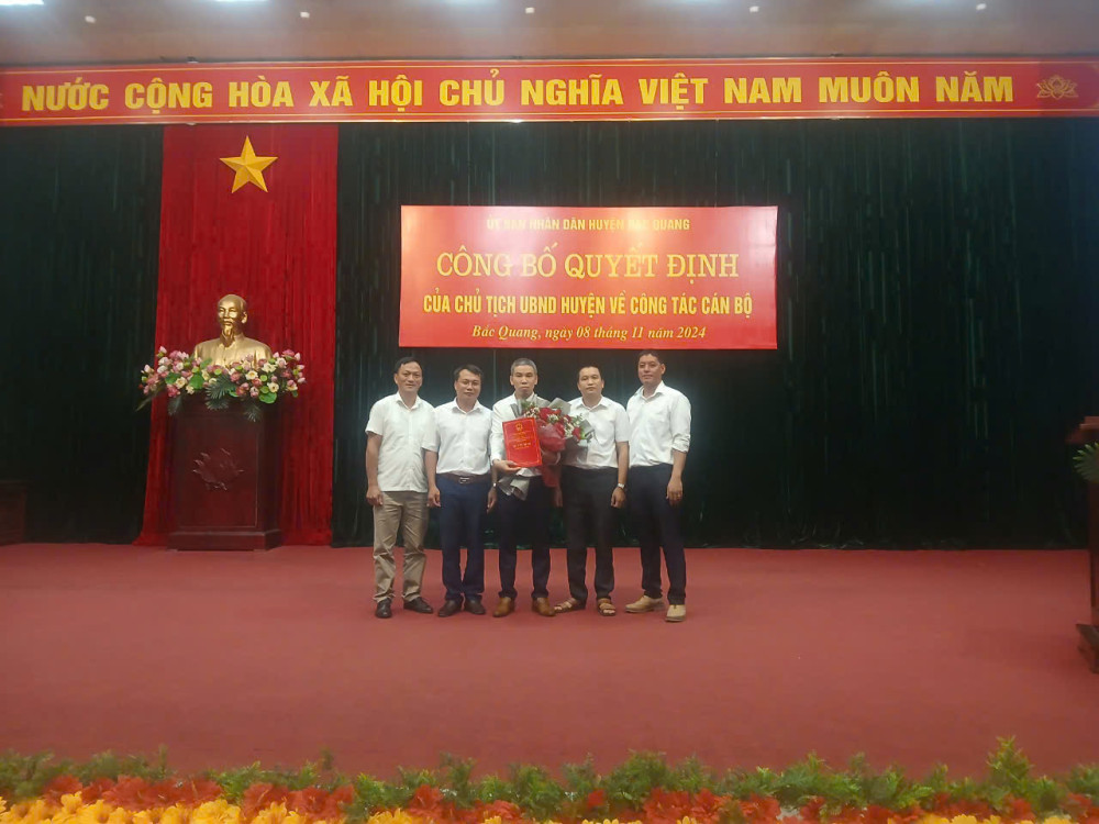 Chiều 8/11, UBND huyện Bắc Quang đã công bố Quyết định về công tác cán bộ. Dự có đồng chí Chủ tịch UBND huyện Phùng Viết Vinh; lãnh đạo một số ban ngành của huyện; lãnh đạo một số xã, thị trấn và đơn vị trường học có cán bộ được điều động, bổ nhiệm đợt này.