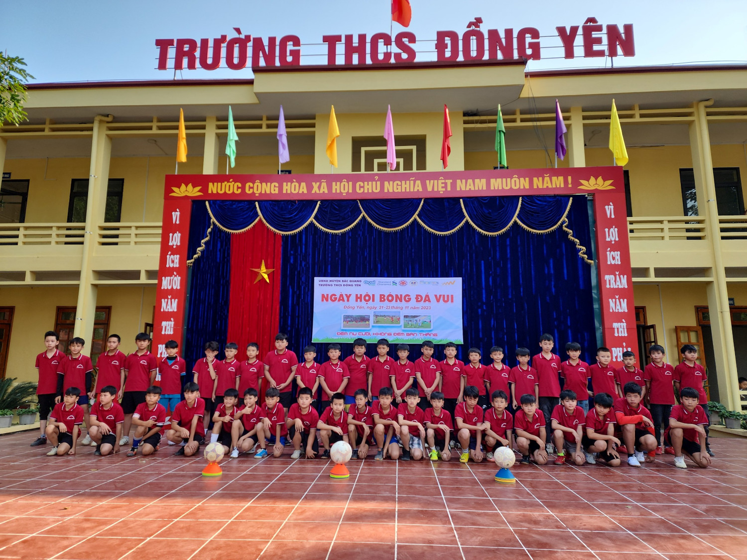 Giáo dục kỹ năng sống thông qua hoạt động của ngày hội. Tạo một sân chơi bổ ích cho các em, giúp các em phát huy tối đa năng khiếu, tính sáng tạo là điều kiện tốt cho các em giao lưu, học hỏi lẫn nhau. Phát triển phong trào Bóng đá của nhà trường thông qua hoạt động tập luyện giao lưu học hỏi cùng với các trường bạn. Tạo sân chơi cho học sinh phát triển năng khiếu Bóng đá, chọn học sinh tiêu biểu đi thi các cuộc thi như Hội khỏe Phù Đổng, đi giao lưu Bóng đá giữa các trường. Phát huy tình cảm, tình yêu mến, niềm tự hào của học sinh đối với quê hương - đất nước; gắn bó với cuộc sống và con người quê hương. Nâng cao tinh thần đoàn kết, tính kỷ luật, trách nhiệm chung cho tất cả học sinh về môn thể thao vua. Tổ chức tuyên truyền, phổ biến, giới thiệu Dự án đến toàn thể giáo viên, nhân viên, học sinh và phụ huynh học sinh bằng các hình thức phù hợp, hiệu quả để giáo viên, nhân viên, học sinh, phụ huynh học sinh hiểu, tham gia, ủng hộ các hoạt động do Dự án tài trợ. Thực hiện thỏa thuận hợp tác giữa Liên đoàn bóng đá Na Uy/Dự án bóng đá cộng đồng tại Việt Nam, sáng ngày 21/11/2023 đến hết ngày 23/11/2023, tại Trường THCS Đồng Yên, Bắc Quang, Hà Giang đã tổ chức Ngày hội bóng đá vui lần thứ nhất năm 2023 cho học sinh trong câu lạc bộ bóng đá và học sinh trong nhà trường. Ngày hội Bóng đá vui cho học sinh năm 2023 gồm 03 nội dung như hoạt động đá bóng, hoạt động kỹ năng sống và hoạt động giáo dục kỹ năng sống thông qua hoạt động bóng đá. Ngày hội không mang tính cạnh tranh mà sử dụng bóng đá làm công cụ lồng ghép, giáo dục kỹ năng sống cho học sinh, tạo sự bình đẳng giới. Các hoạt động tổ chức theo phương châm “Nam nữ luôn bình đẳng trong bóng đá cũng như trong cuộc sống” , “đếm nụ cười, không đếm bàn thắng” nhằm tiếp tục đẩy mạnh phong trào tổ chức các hoạt động bóng đá và kỹ năng sống trong nhà trường. Đây là một sân chơi bổ ích, giúp các em phát huy tốt tính sáng tạo, các kỹ năng. Qua ngày hội tạo ra được sân chơi thân thiện, đoàn kết giữa các học sinh trong nhà trường; đồng thời rèn luyện sức khỏe để học tập, rèn luyện. Dưới đây là một số hình ảnh ngày hội: