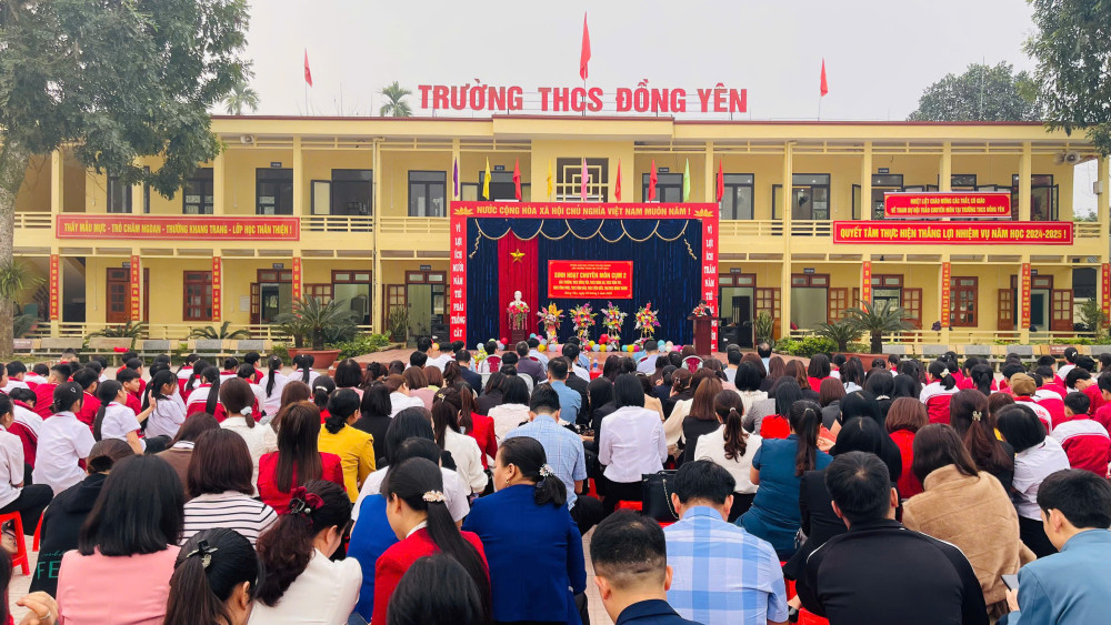 Căn cứ kế hoạch số 08/KH-PGDĐT ngày 12/02/2025 của Phòng GD&ĐT Bắc Quang, Kế hoạch tổ chức sinh hoạt chuyên môn cụm trường cấp THCS năm học 2024-2025; Thực hiện kế hoạch số 18/KH-THCSĐY ngày 15/02/2025 của trường THCS Đồng Yên, Kế hoạch tổ chức sinh hoạt chuyên môn cụm trường cấp THCS năm học 2024-2025; Được sự nhất trí của Phòng GD&ĐT huyện Bắc Quang, Ban giám hiệu các trường trong cụm 2, các trường Trường THCS Đồng Yên (cụm trưởng), THCS Hùng An, THCS Vĩnh Tuy, THCS Tiên Kiều, THCS Vĩnh Hảo, THCS Vĩnh Phúc, TH&THCS Đông Thành hôm nay này 05/03/2025 tại trường THCS Đồng Yên đã diễn ra hội thảo sinh hoạt chuyên môn cụm. Về dự hội thảo sinh hoạt chuyên môn cụm có đ/c Nguyễn Ngọc Cương, Phó trưởng phòng GD&ĐT Bắc Quang, đ/c Hoàng Thị Hải Yến, Phó chủ tịch UBND xã Đồng Yên, Tổ chuyên môn THCS phòng GD&ĐT Bắc Quang, 141 cán bộ quản lý, giáo viên của 07 trường trong cụm được chia làm 10 môn học để hội thảo, học sinh trường THCS Đồng Yên.
