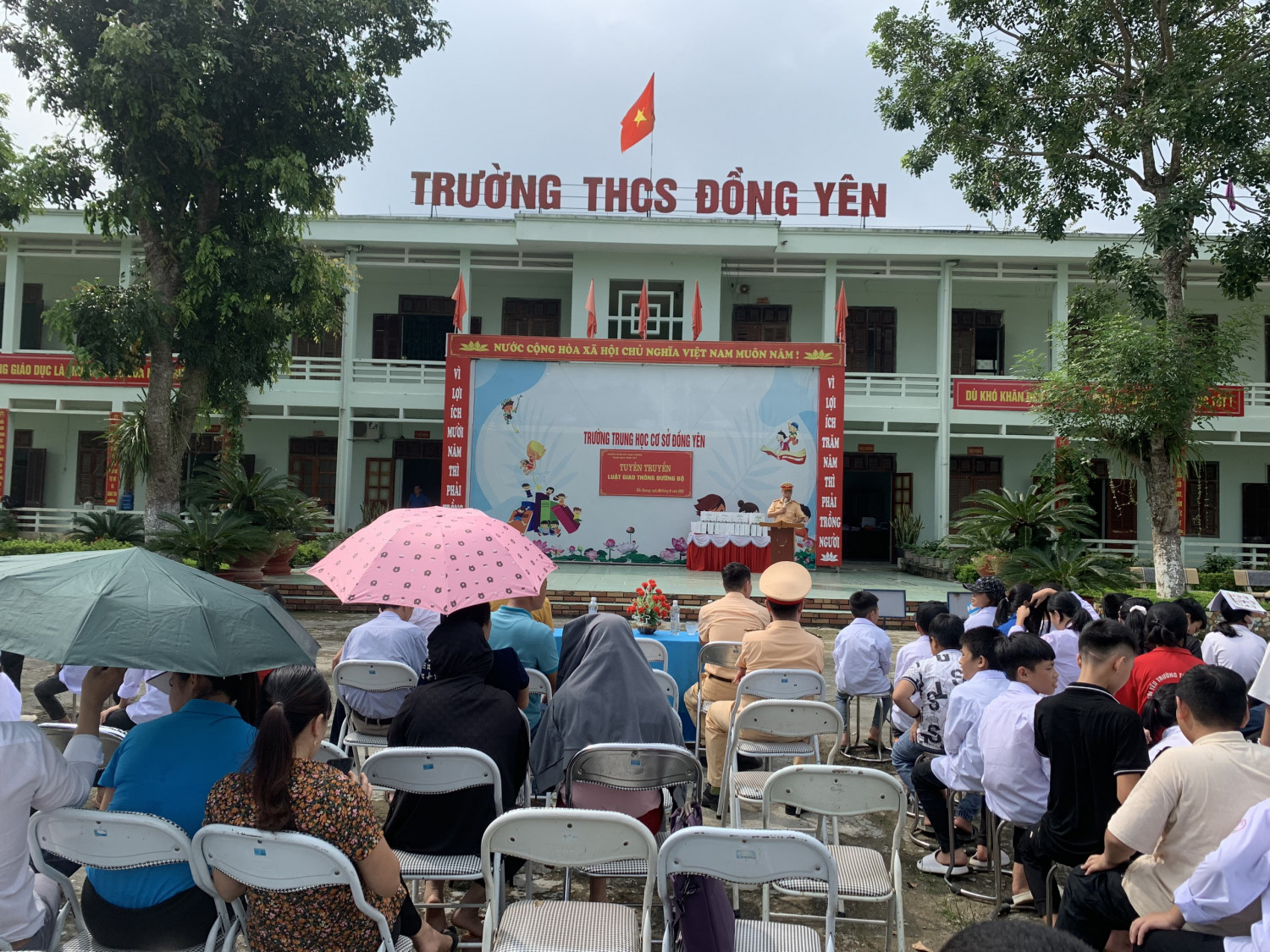 Tham dự buổi tuyên truyền có 30 cán bộ giáo viên và 564 học sinh của nhà trường. Tại buổi tuyên truyền, cán bộ Phòng Cảnh sát giao thông công anh tỉnh Hà Giang, trạm giao thông 32  đã thông tin tình hình TTATGT và tai nạn giao thông trên địa bàn tỉnh nói chung, xã Đồng Yên nói riêng thời gian qua; đồng thời phổ biến, hướng dẫn Luật giao thông đường bộ và một số văn bản liên quan như: cách sang đường, đi đúng làn đường, không được chở quá số người quy định trên các phương tiện giao thông; chấp hành đội mũ bảo hiểm theo quy định… Thông qua buổi tuyên truyền nhằm cung cấp cho giáo viên, học sinh những kiến thức cơ bản về Luật giao thông đường bộ; giúp các em nâng cao ý  thức chấp hành pháp luật và tham gia giao thông đúng quy định, phòng ngừa tai nạn giao thông đáng tiếp có thể xảy ra.